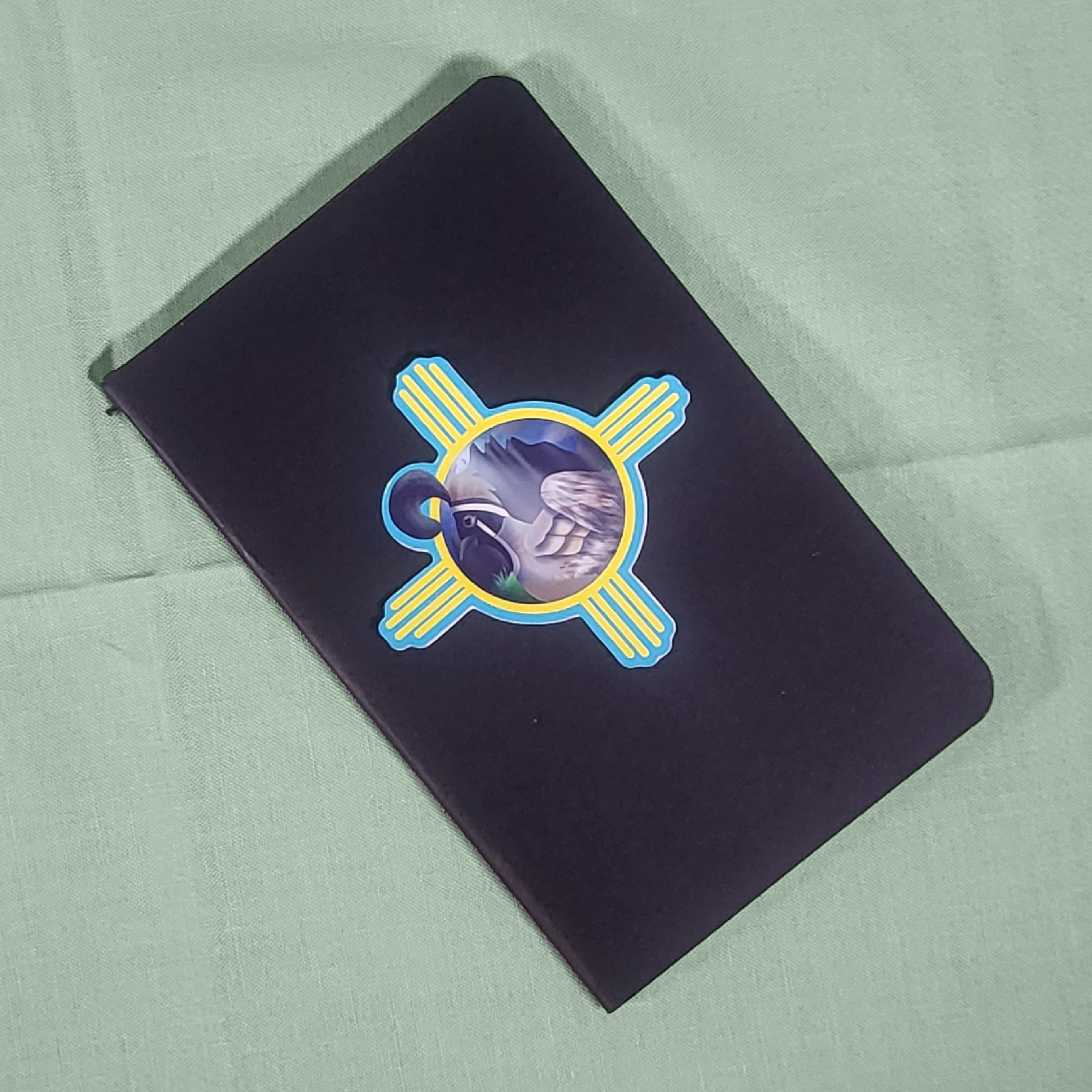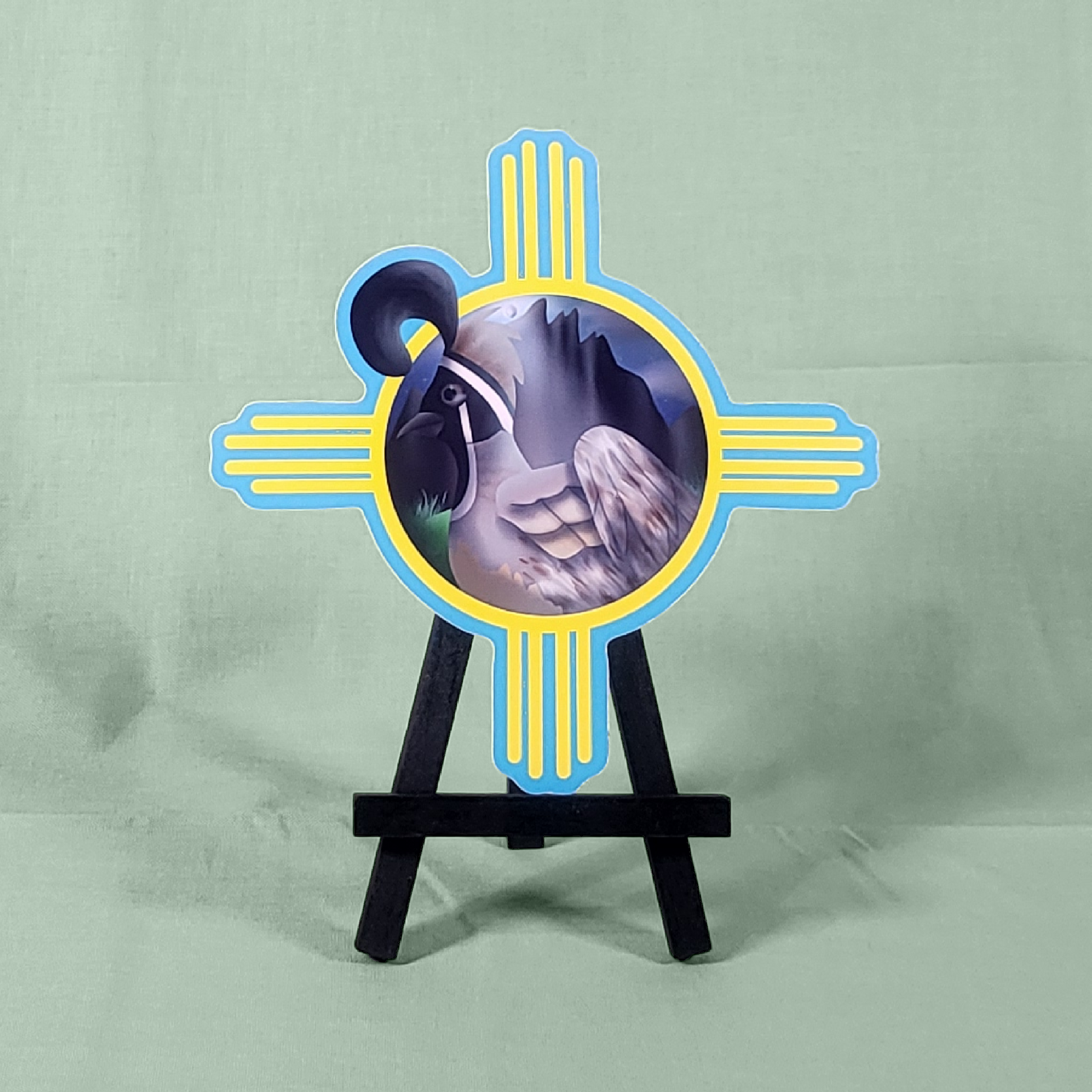 Cute Vinyl Stickers of the New Mexico flag logo with a Quail. A charming, abundant bird native to New Mexico is available in both matte and glossy finishes.